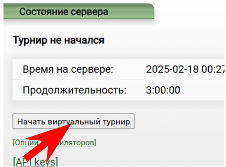После входа нужно нажать кнопку “Начать виртуальный турнир”