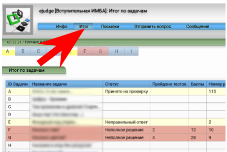 В тестирующей системе обратите внимание на вкладку “Итог”. На ней можно увидеть свой прогресс.
